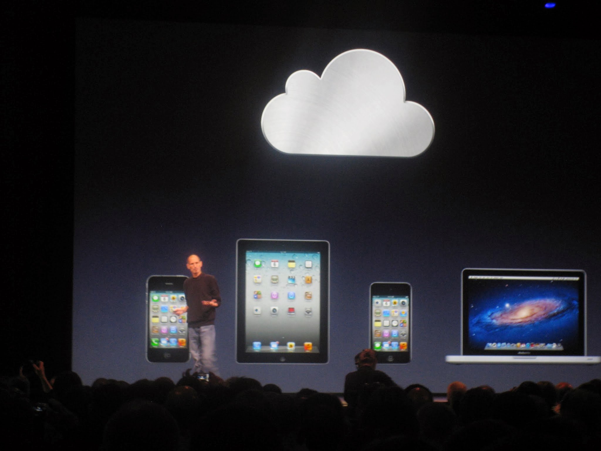 工作期间没什么值得记忆的事情。去了三趟美国,一趟加拿大,一趟瑞典。尤其是2008年跟2011年受苹果公司邀请去旧金山,参加他们的开发者大会。见证了乔布斯发布iPhone 3G跟iCloud。这也是让我成为忠实“果粉”的原因。乔布斯的个人魅力是无可匹敌的,我在听他的发布会之前没有用过任何苹果的设备,但是听完发布会,我立马就捂不住钱包了,冲到最近的苹果店里面想买iPhone。下图是2011年乔布斯生前最后一次公开演讲。发布iCloud。我有幸离乔布斯只有50米。见证了身患癌症,奄奄一息的乔帮主依然精神矍铄的介绍苹果最新的革命性技术。